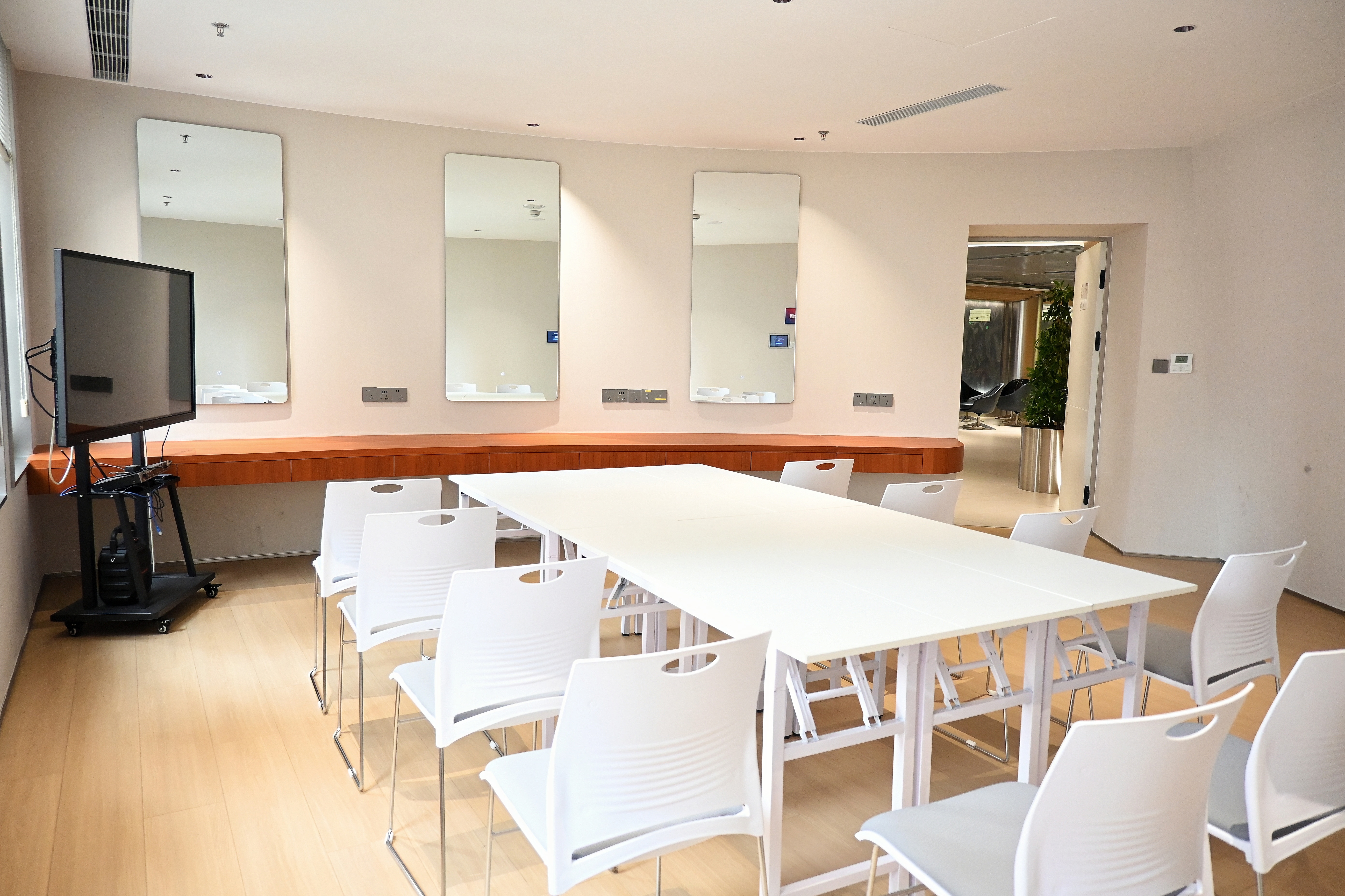 白板、桌椅、饮水机等基础设备齐全,满足培训、会议、路演等多元需求